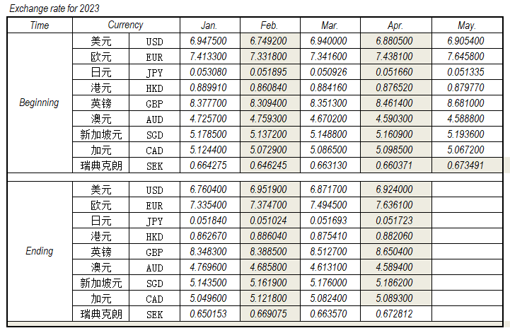 2023年4月外匯匯率,來源中國人民銀行供參考。